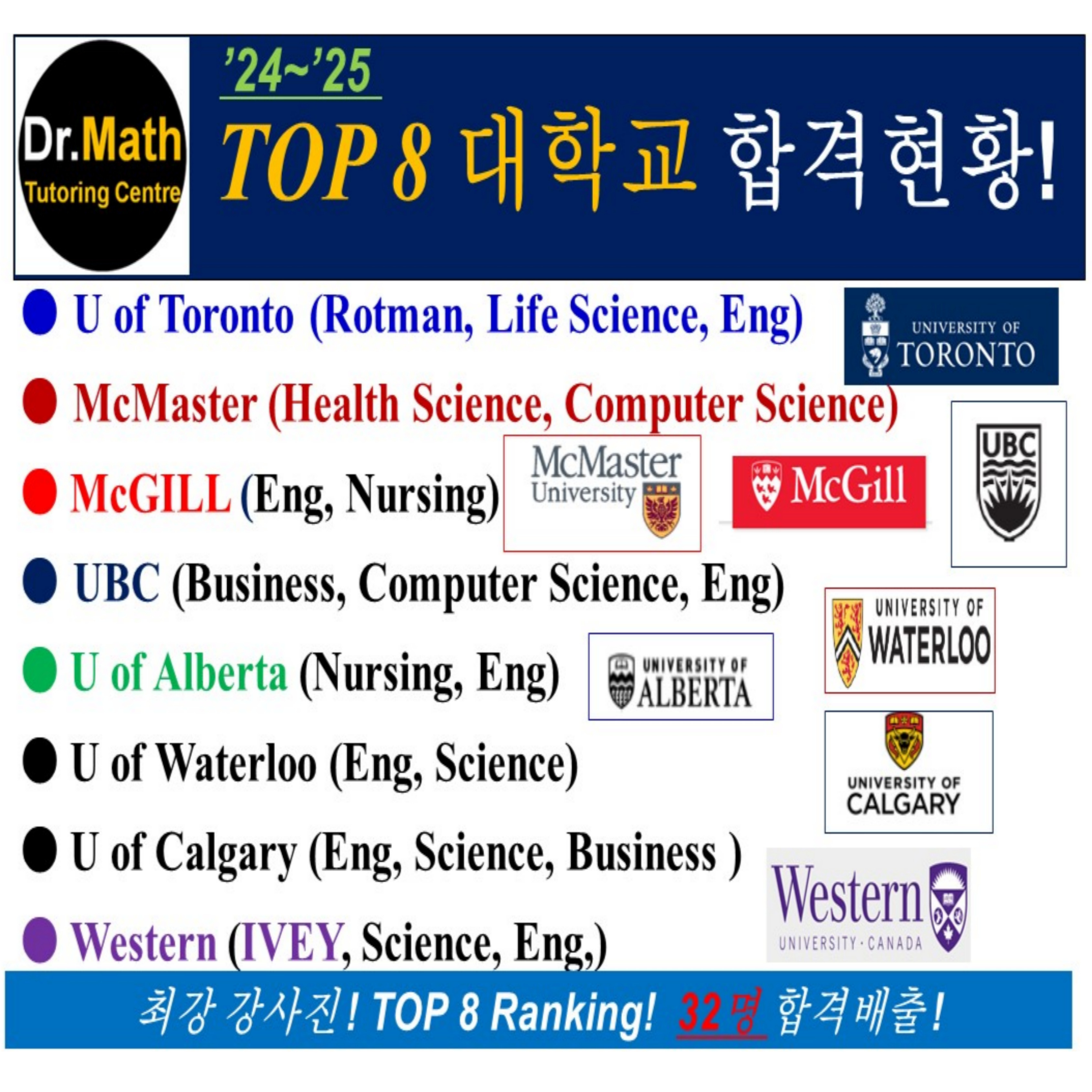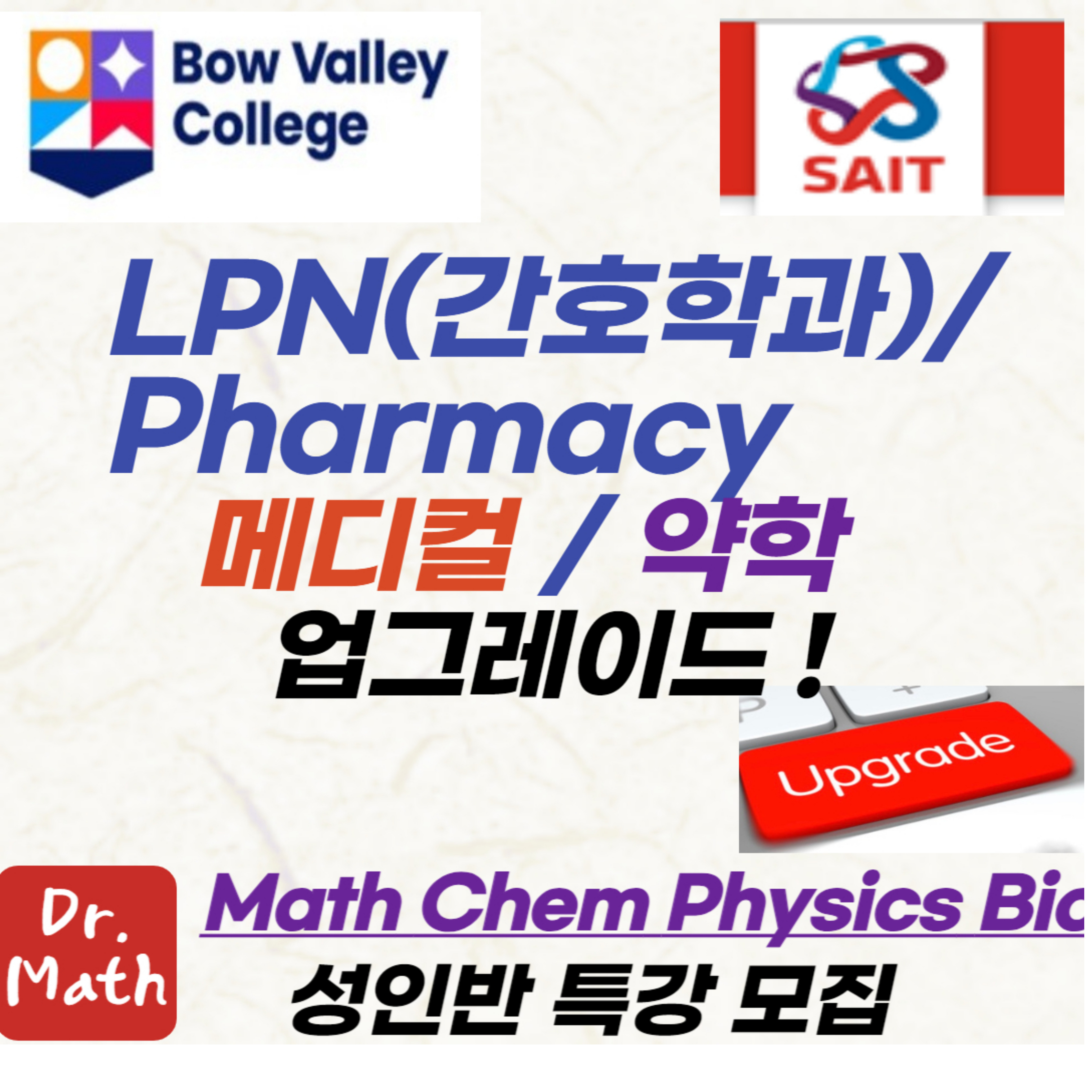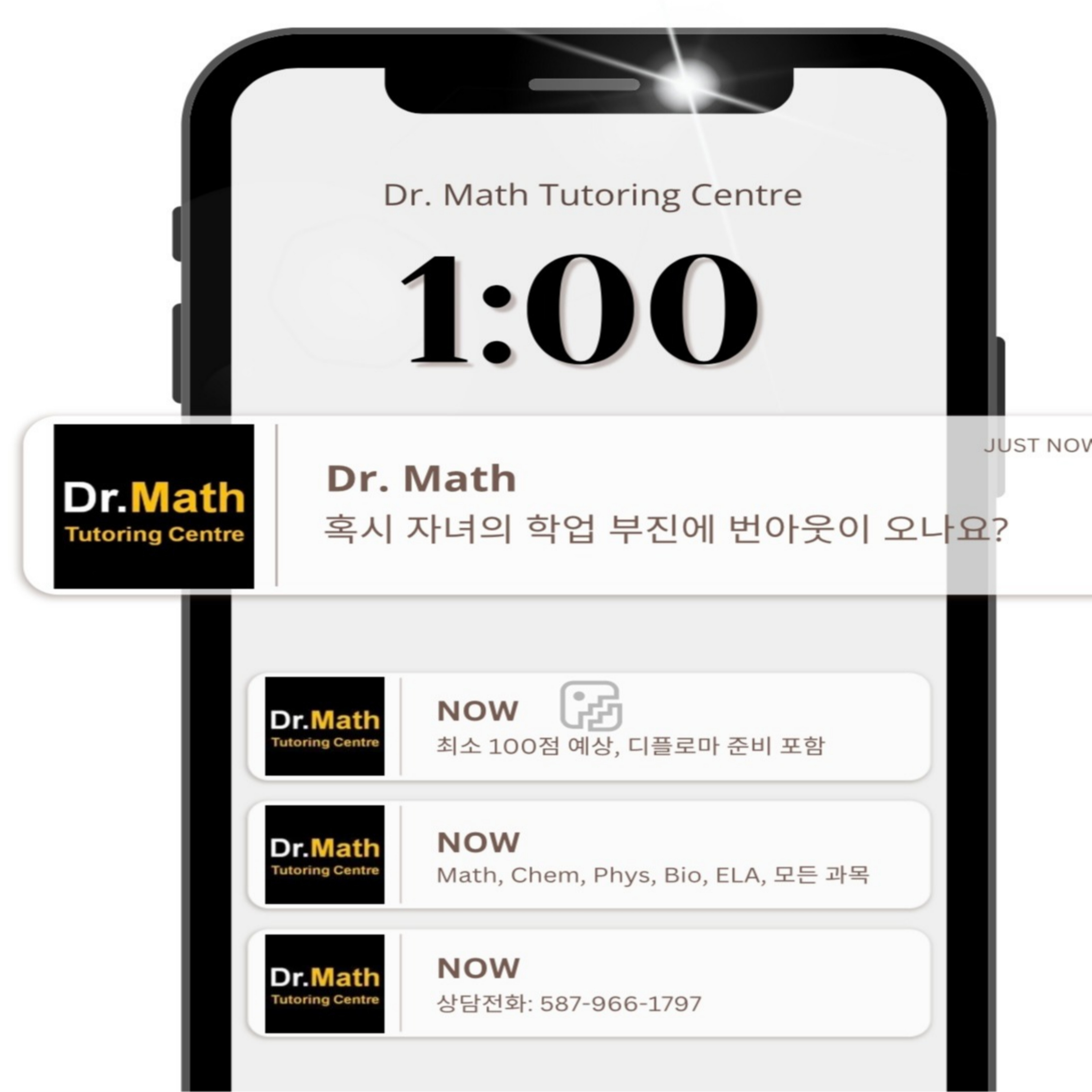 ● 공학박사(Ph.D)외, 최강의 강사진 Dr. Math Tutoring Centre 캘거리, G9~12 고등과정 수학, 과학 전문 학원 Math, Calculus, Physics , Chem., Biology 10- 30, Ph.D., 외 최강의 4명 강사진, 대표강사 Dr. Sean 원장 drmathsmar