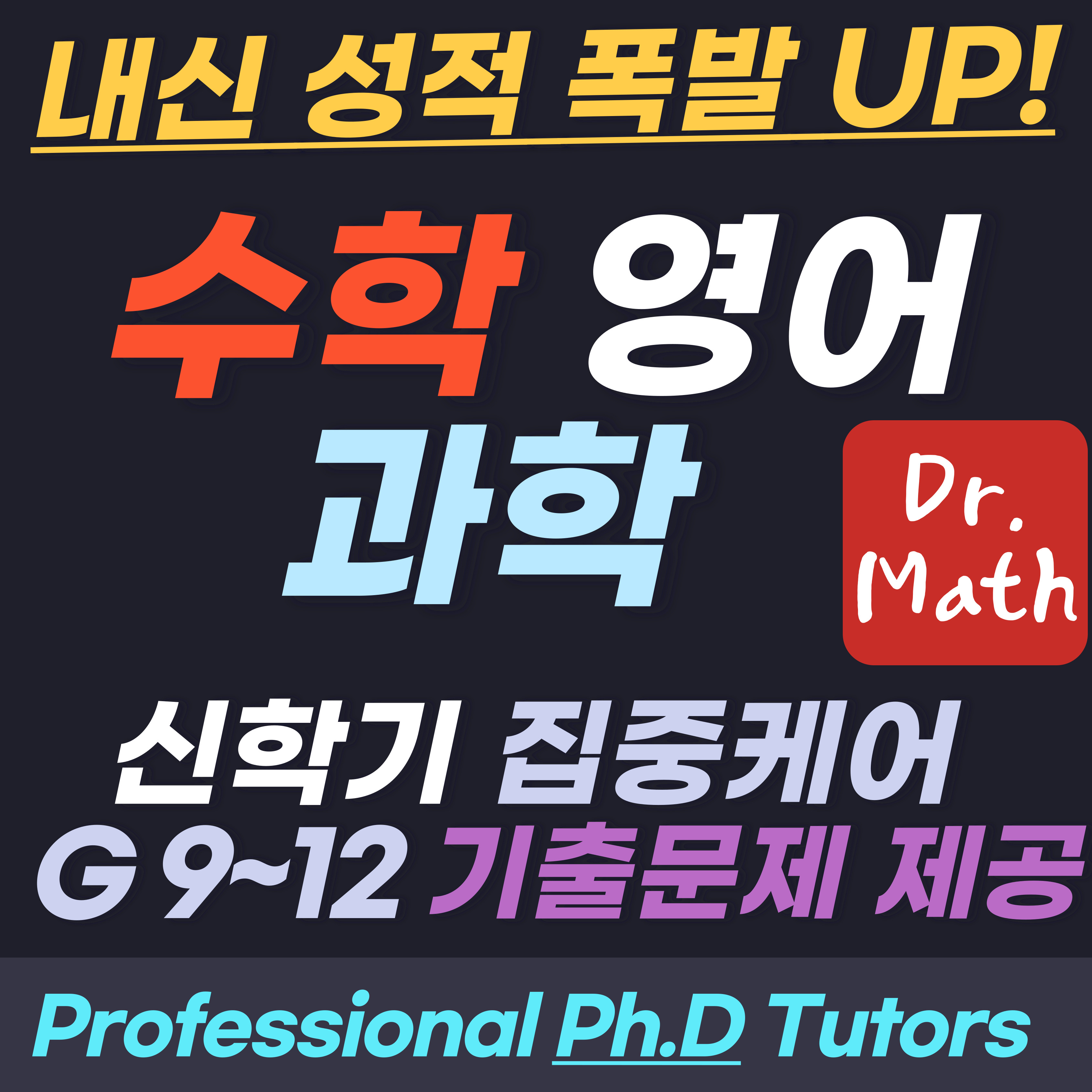 G9~12 수학 영어 과학 전문학원 공학박사(Ph.D)원장과 최고 강사진8명 여러분을 기다립니다.