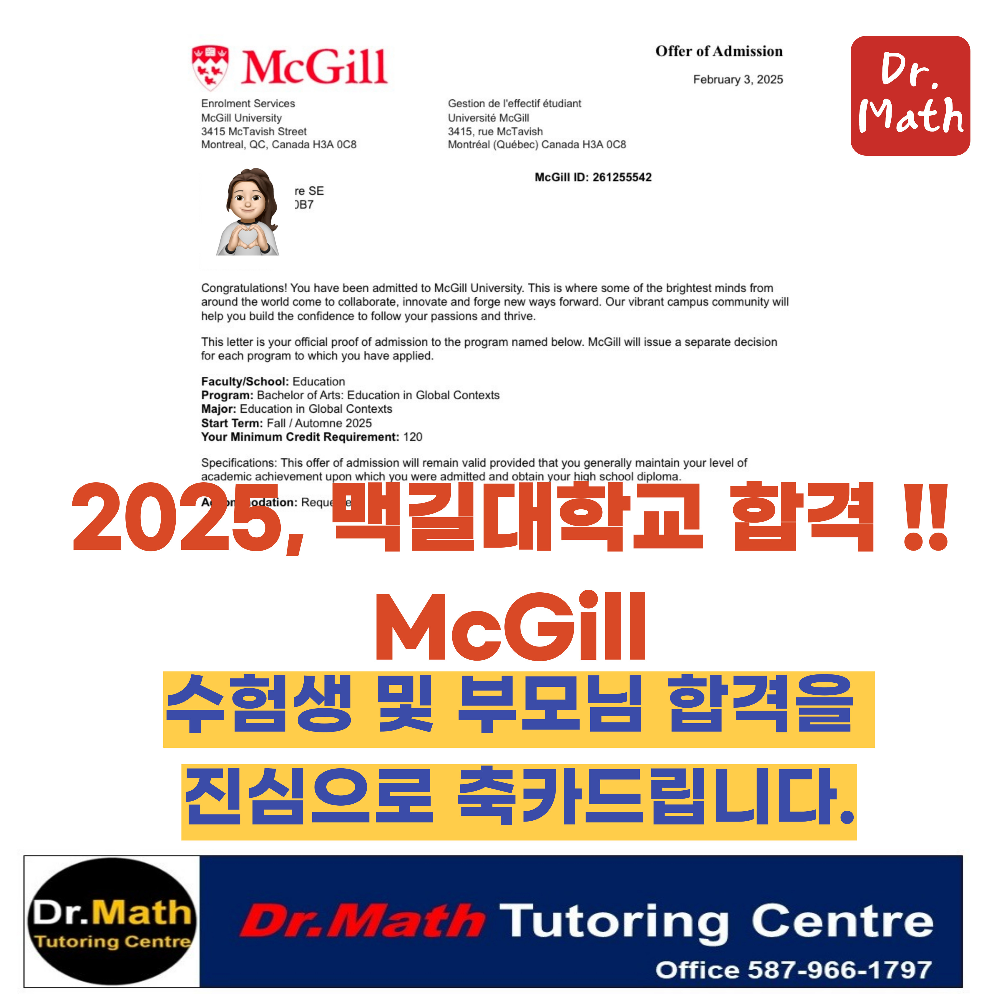 ● 공학박사(Ph.D)외, 최강의 강사진 Dr. Math Tutoring Centre캘거리, G9~12 고등과정 수학, 과학 전문 학원 Math, Calculus, Physics , Chem., Biology 10- 30, Ph.D., 외 최강의 4명 강사진, 대표강사 Dr. Sean 원장drmathsma