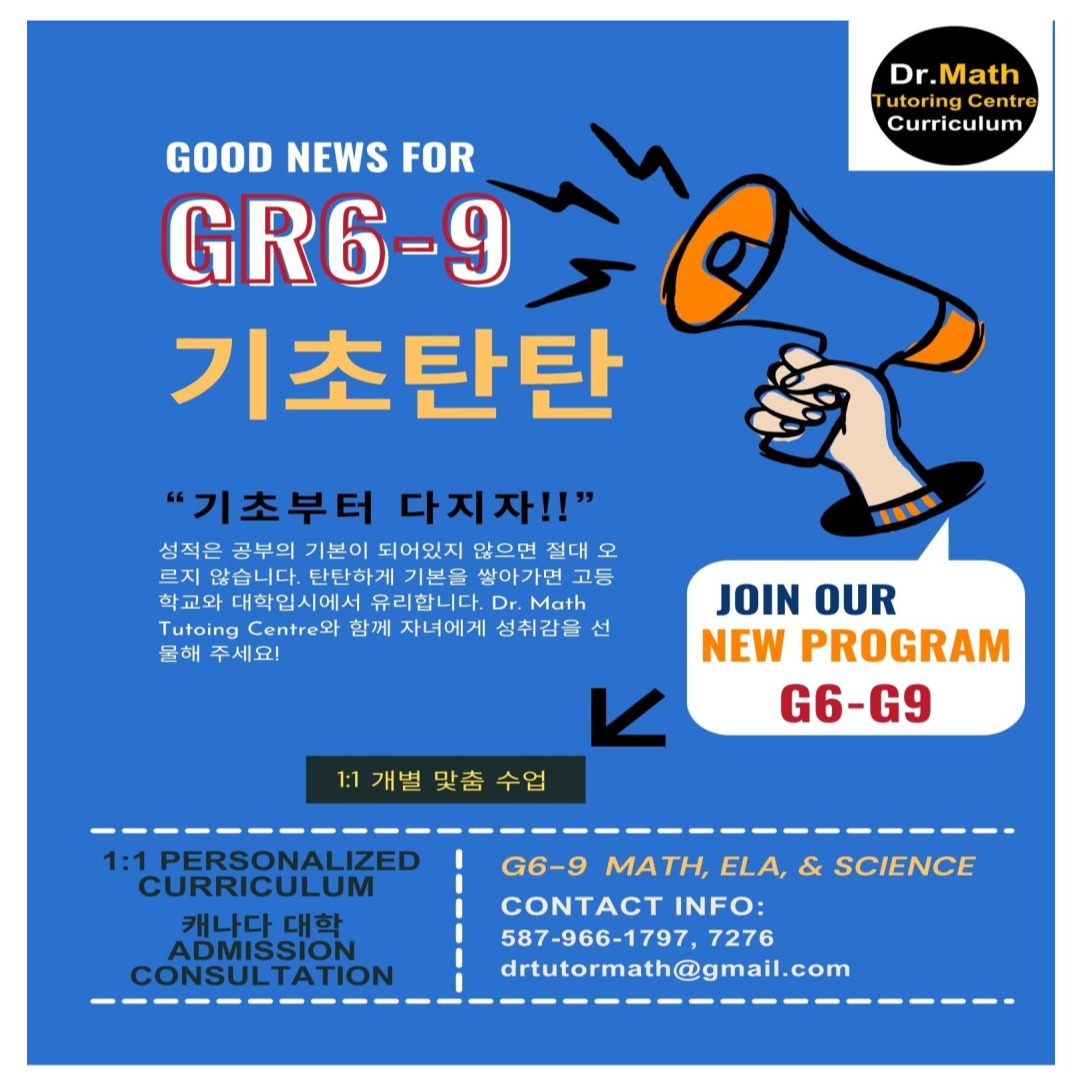 카테고리 없음 Dr. Math 랑 튜터해 Dr. Math 공학박사 수학강사 2026. 1. 15. 10:07 반응형 ● Dr. Math Tutoring 강사진 소개 ● 공학박사(Ph.D)외, 최강의 강사진 Dr. Math Tutoring Centre캘거리, G9~12 고등과정 수학, 과학 전문 학원 Math, Calculus, Physics , Chem., Biology 10- 30, Ph.D., 외 최강의 4명 강사진, 대표강사 Dr. Sean 원장drmathsmart. drmathsmart.tistory.com 반응형 공유하기 게시글 관리 Dr. Math Tutoring Centre 저작자표시 비영리 (새창열림)