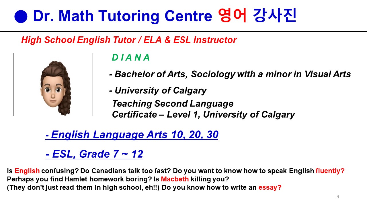 ⏩ Office : 587-966-1797, 7276 ⏩ Address : 75 Cranwell Square SE, T3M0B7 ✅ 실시간 상담 : http://pf.kakao.com/_bxjspxb/chat ✅ Homepage : https://drmathsmart.tistory.com/ ✅ Email : drtutormath@g..